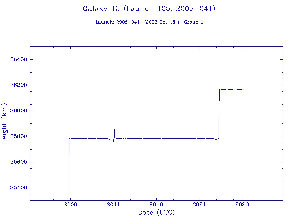 | Galaxy 15 (Launch 105, 2005-041) | 1 | 0 | 0 | 0 | 0 | 0 | 1 | 0 | 0 | 1 | 0 | 0 | 0 | 0 | 0 | 0 | 0 | 0 | 0 |  |  |  |