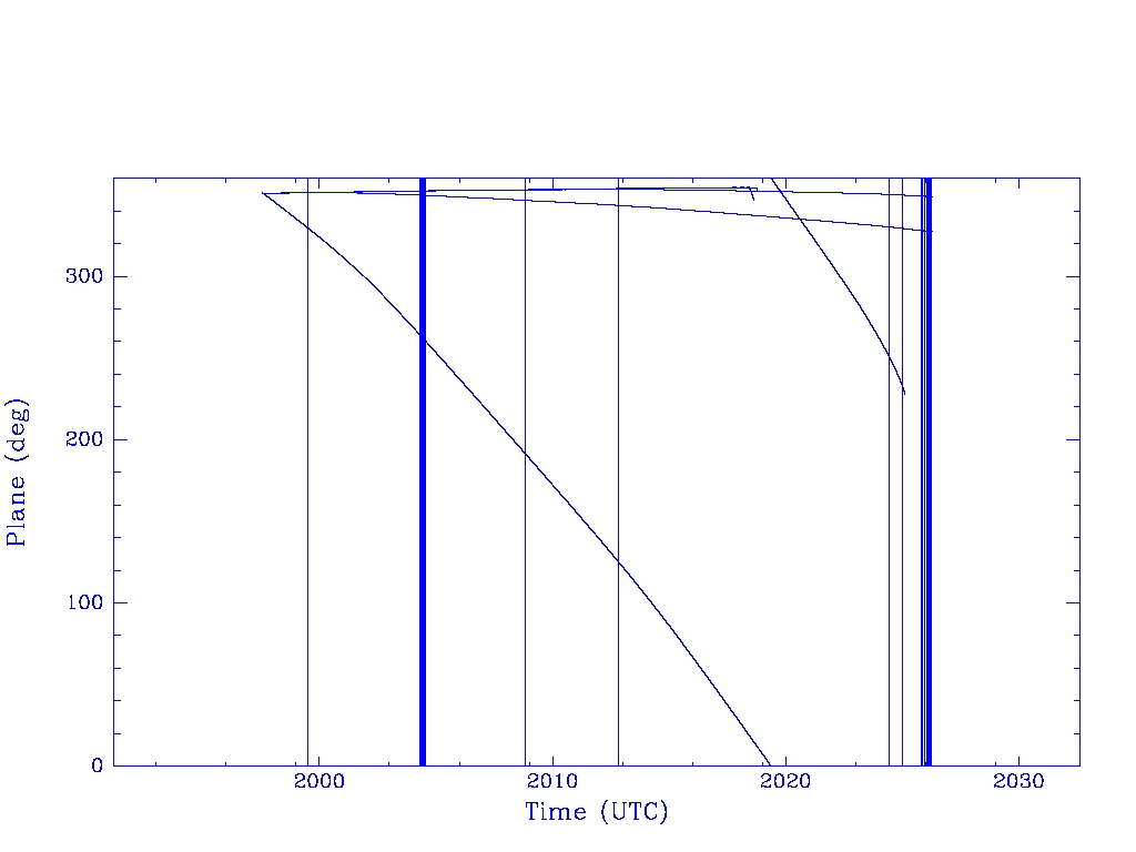 Click on mission name for details of individual satellites. Phase/Plane plots only include satellites in`operational orbit' (status = O)
