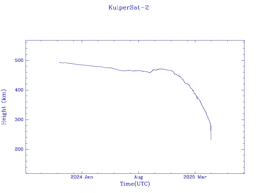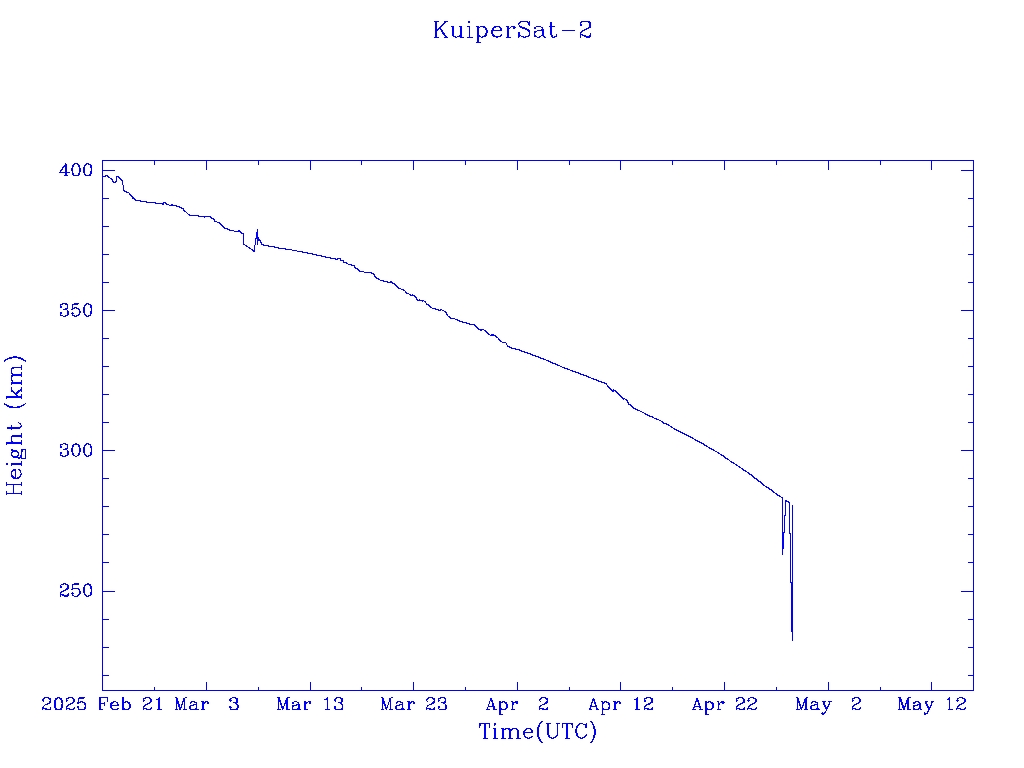 | KuiperSat-2 | S58013 | R | 2023 Oct 6 | 2025 Apr? | 2025 Apr 29 | ![]() | ![]() | ![]() |