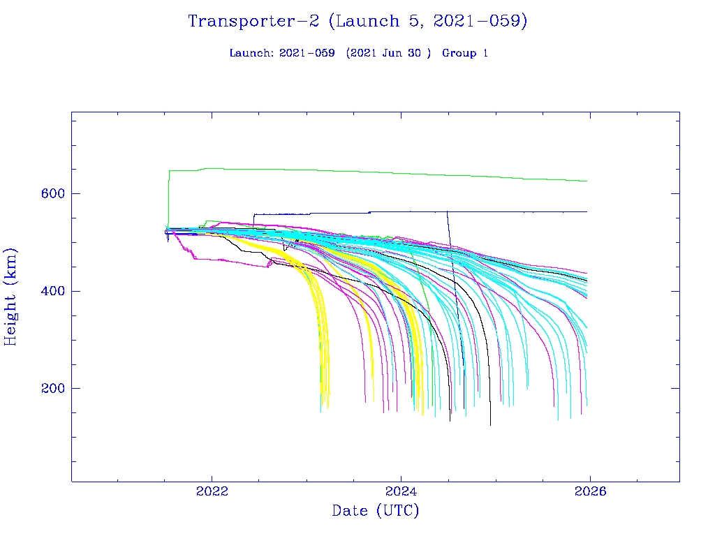 Down (F) Early deorbit: satellites which have reentered; determined to be malfunctioning before reaching operational orbit,