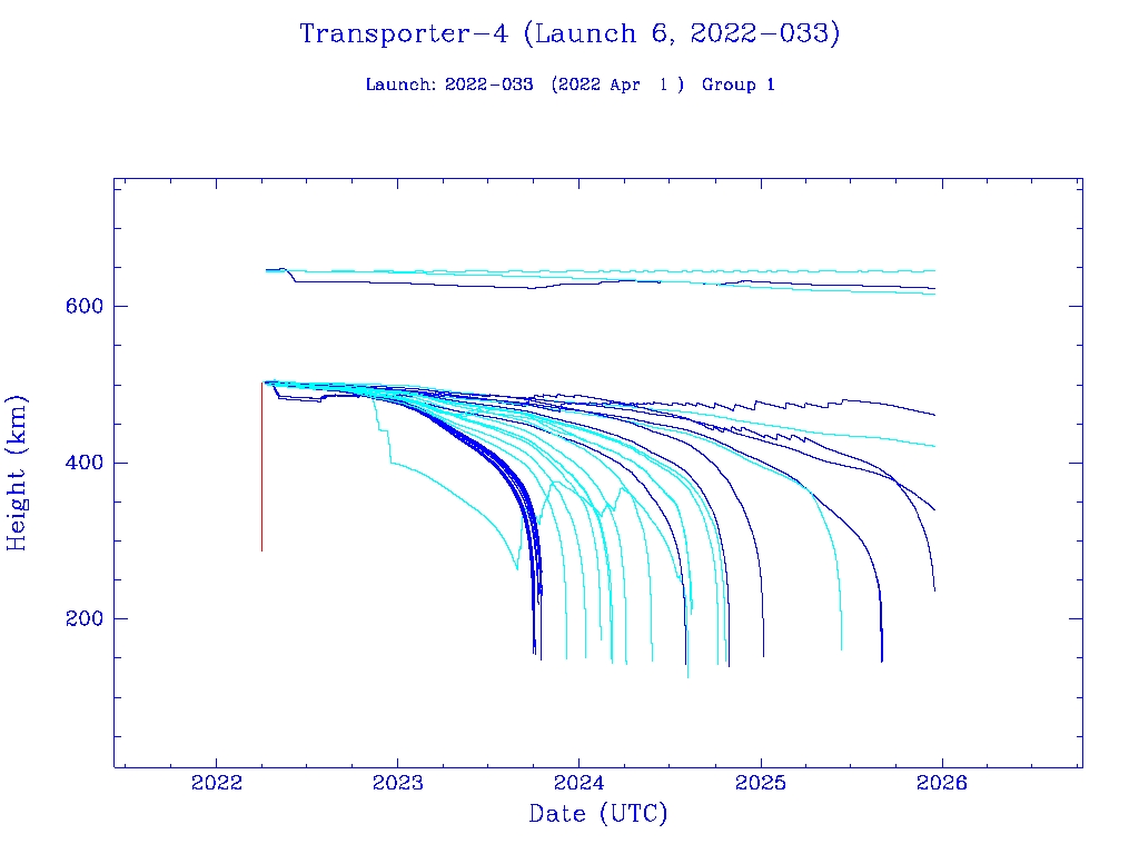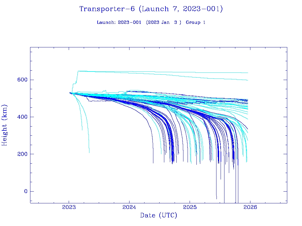 Screened (F): Satellites not working correctly and left in low orbit prior to completing orbit raising; expected to reenter soon. Includes satellites that failed at launch.