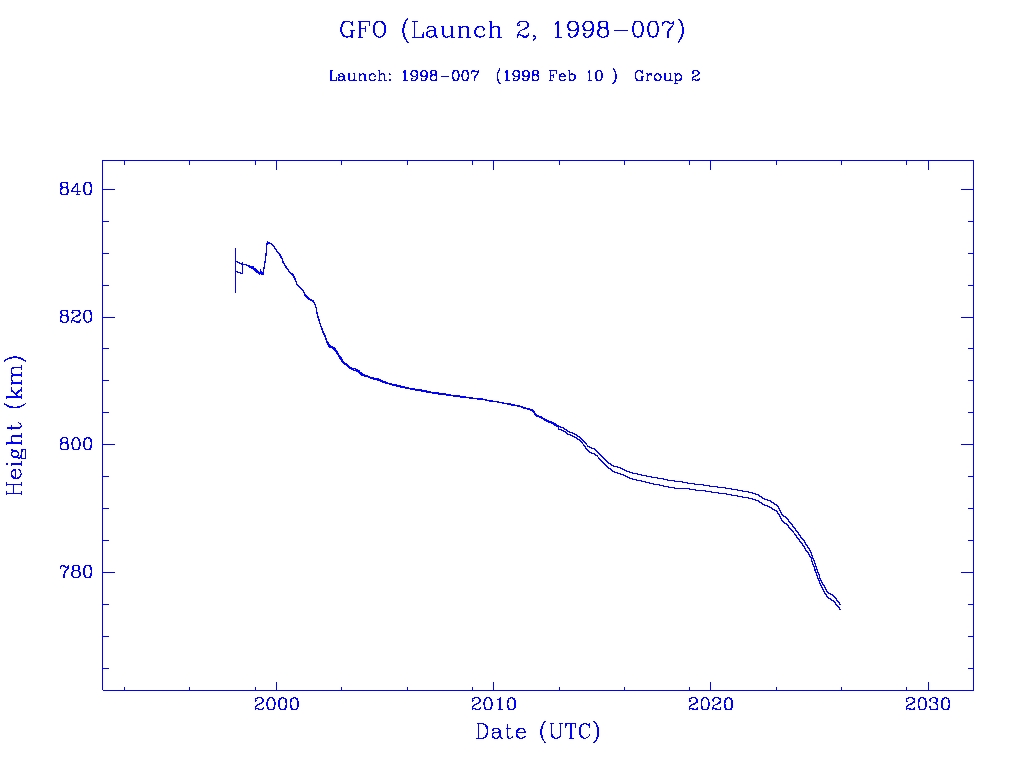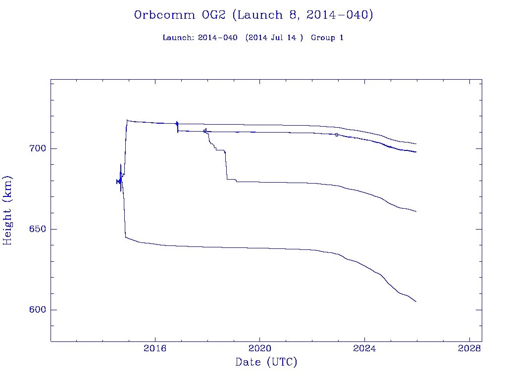 Dead (M): Failed, uncontrolled decay. Satellites stopped stationkeeping after reaching operational orbit; no manuevers occurring, presumed failed.