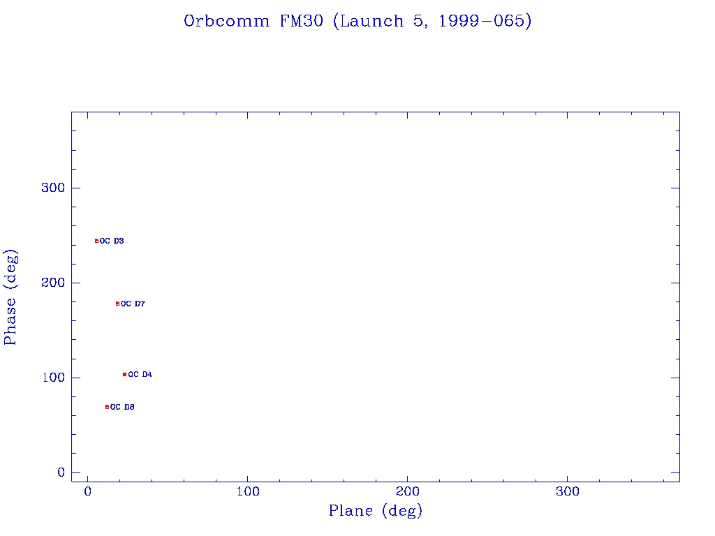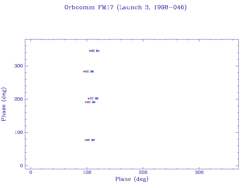 Click on mission name for details of individual satellites. Phase/Plane plots only include satellites in`operational orbit' (status = O)