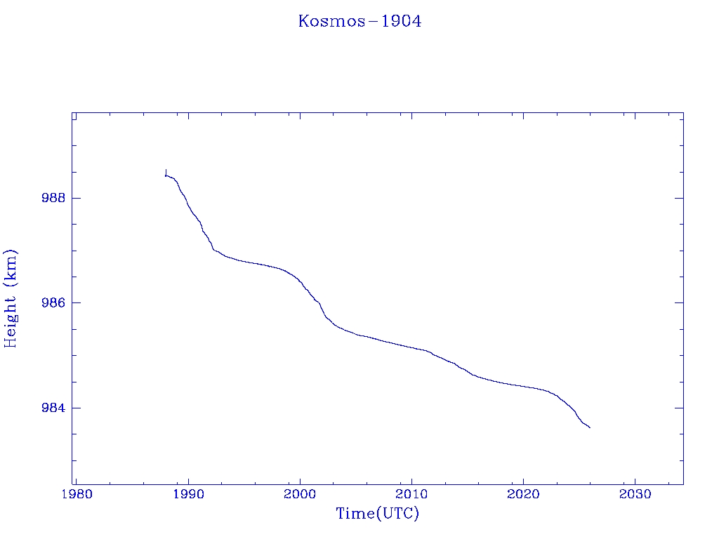 | Kosmos-1904 | S18709 | 1987 Dec 23 | 1990 Apr 20? | - | ![]() | ![]() | ![]() |