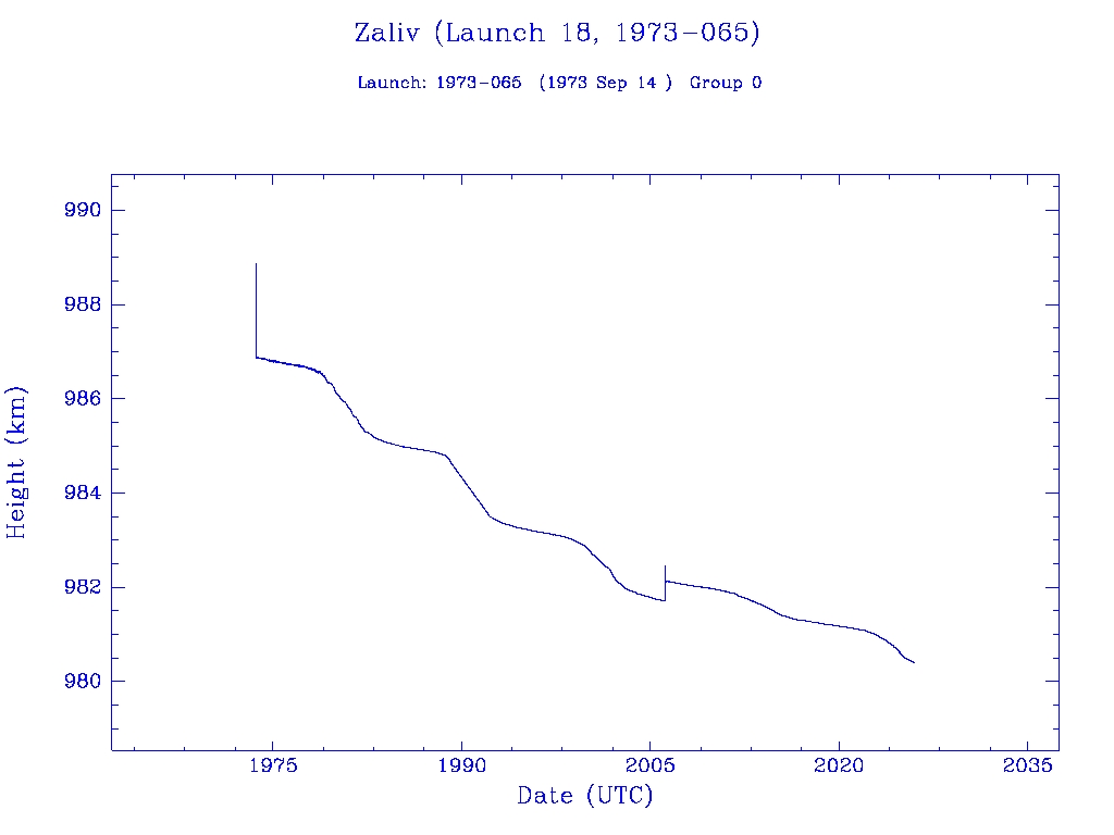 | Zaliv (Launch 18, 1973-065) | 1 | 0 | 0 | 0 | 0 | 1 | 1 | 0 | 0 |  |  |  |