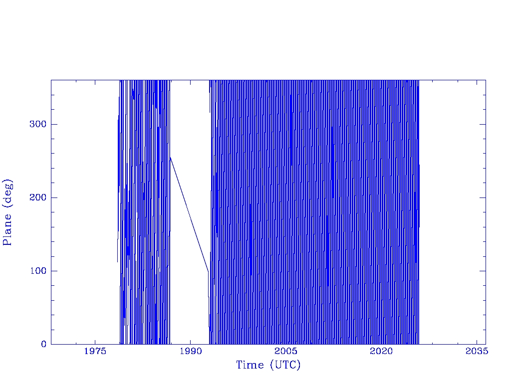 Click on mission name for details of individual satellites. Phase/Plane plots only include satellites in`operational orbit' (status = O)