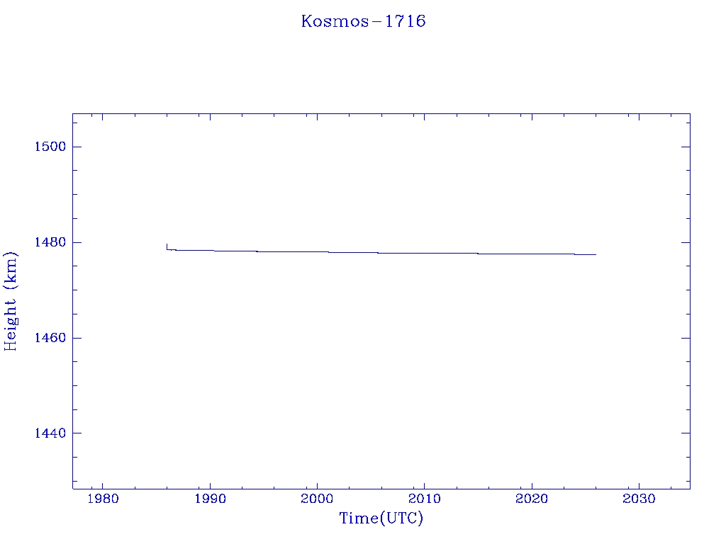 | Kosmos-1716 | S16449 | | 1986 Jan 9 | 1988? | - |  |  |  |