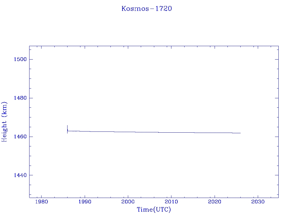 | Kosmos-1720 | S16453 | | 1986 Jan 9 | 1988? | - |  |  |  |