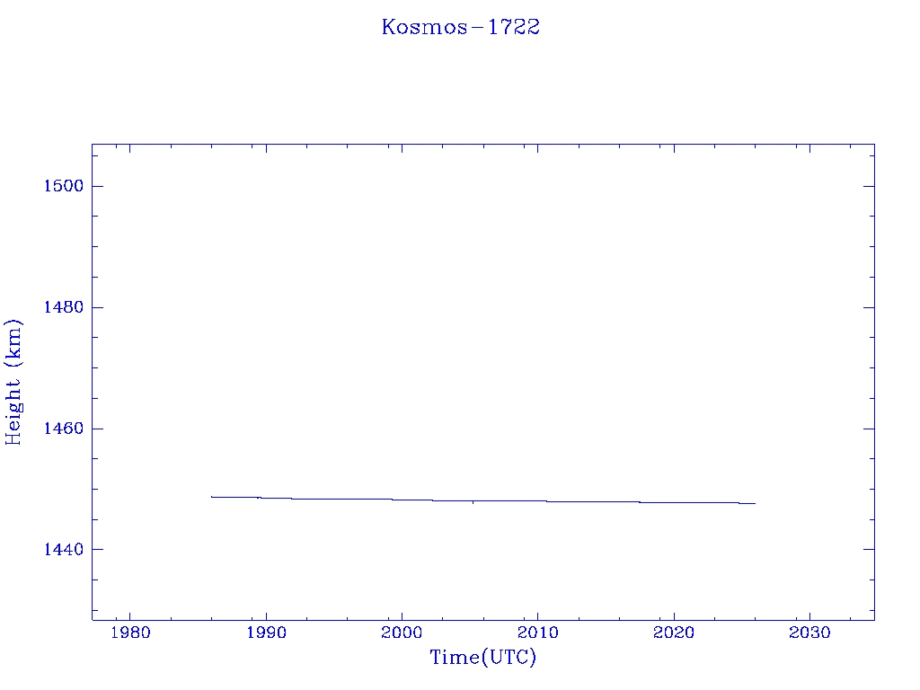 | Kosmos-1722 | S16455 | | 1986 Jan 9 | 1988? | - |  |  |  |