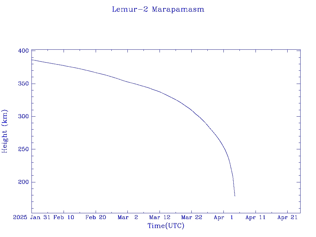 | Lemur-2 Marapamasm | S58332 | | 2023 Nov 11 | 2025 Mar? | 2025 Apr 8 |  |  |  |