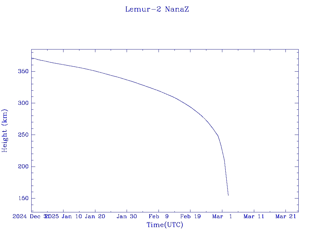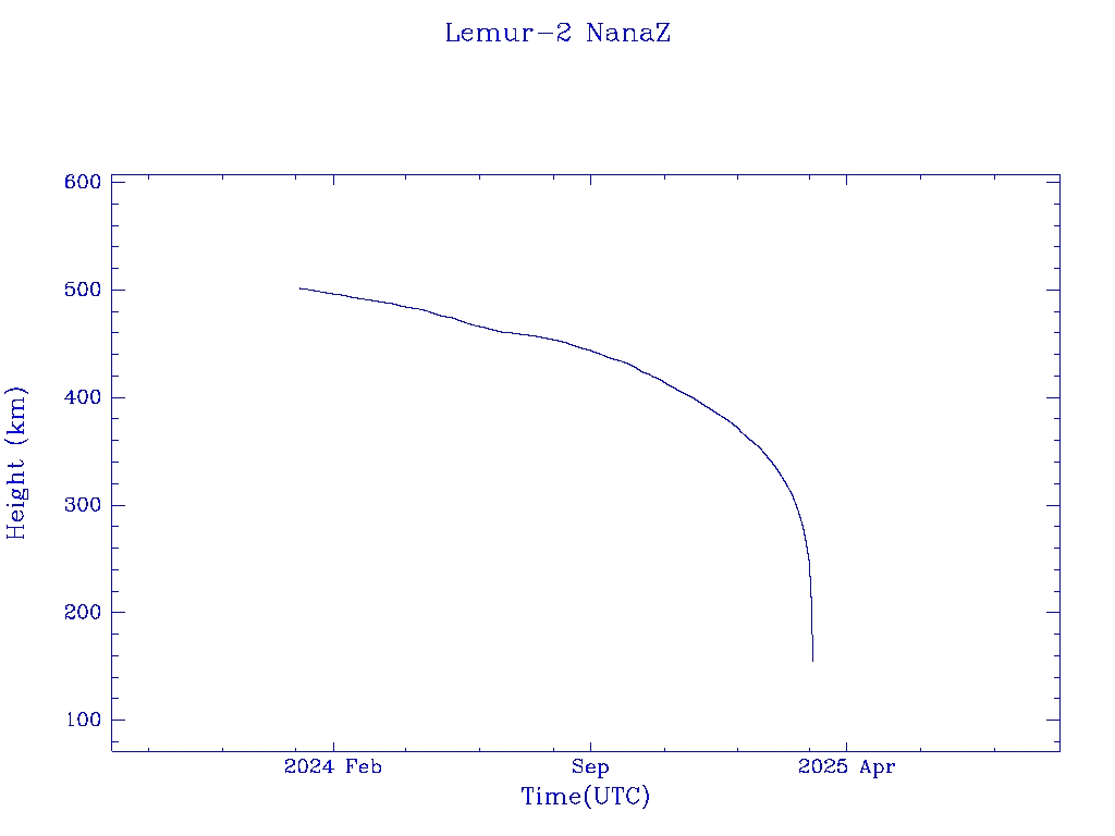 | Lemur-2 NanaZ | S58697 | | 2023 Nov 11 | 2025 Feb? | 2025 Mar 8 |  |  |  |