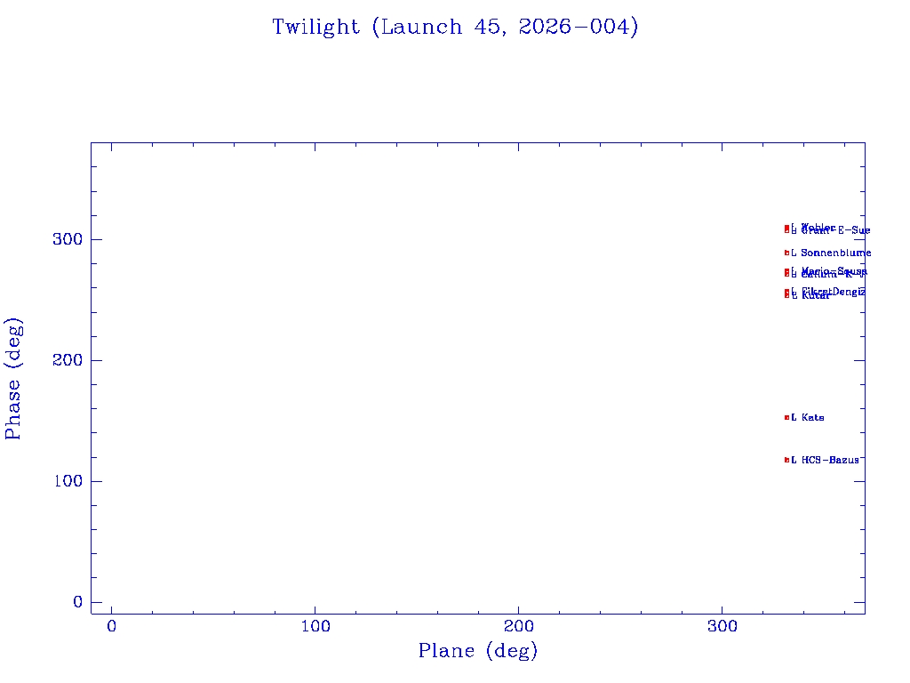 | Mission | Total Sats Launched | Failed to orbit | Disposal Complete | Reentry after Fail | Total Down | Total In Orbit | Failed, decaying | Total Working | Operational Orbit | Orbit Heights | Phase vs Plane | Plane vs Time |