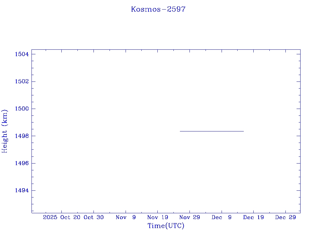 | Kosmos-2597 | S66647 | 2025 Nov 25 | * | - | ![]() | ![]() | ![]() | |