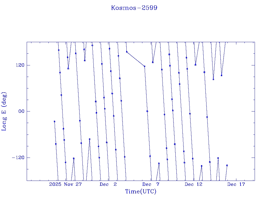 | Kosmos-2599 | S66649 | 2025 Nov 25 | * | - | ![]() | ![]() | ![]() |