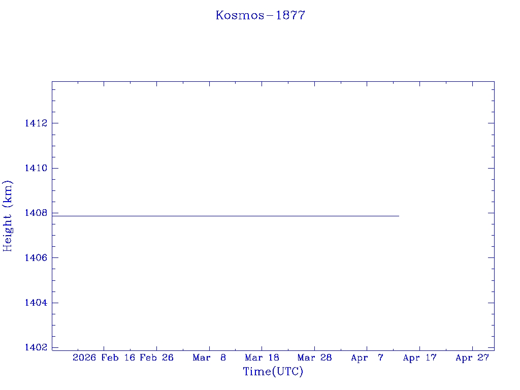 | Kosmos-1877 | S18336 | | 1987 Sep 7 | 1990? | - |  |  |  |