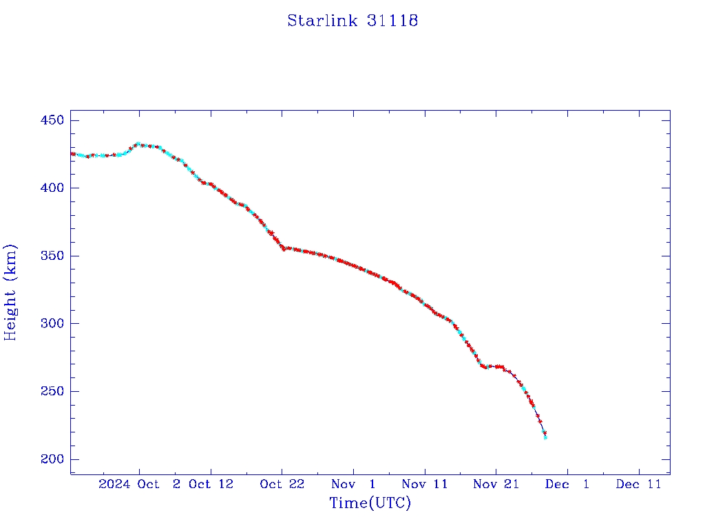 | Starlink 31118 | S58620 | R | 2023 Dec 23 | 2024 Nov 22? | 2024 Nov 28 |  |  |  |