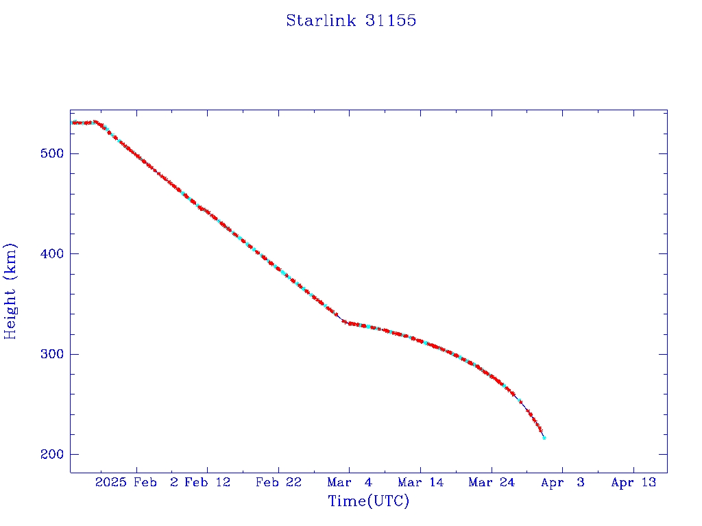 | Starlink 31155 | S58728 | R | 2024 Jan 7 | 2025 Mar 3 | 2025 Mar 31 |  |  |  |