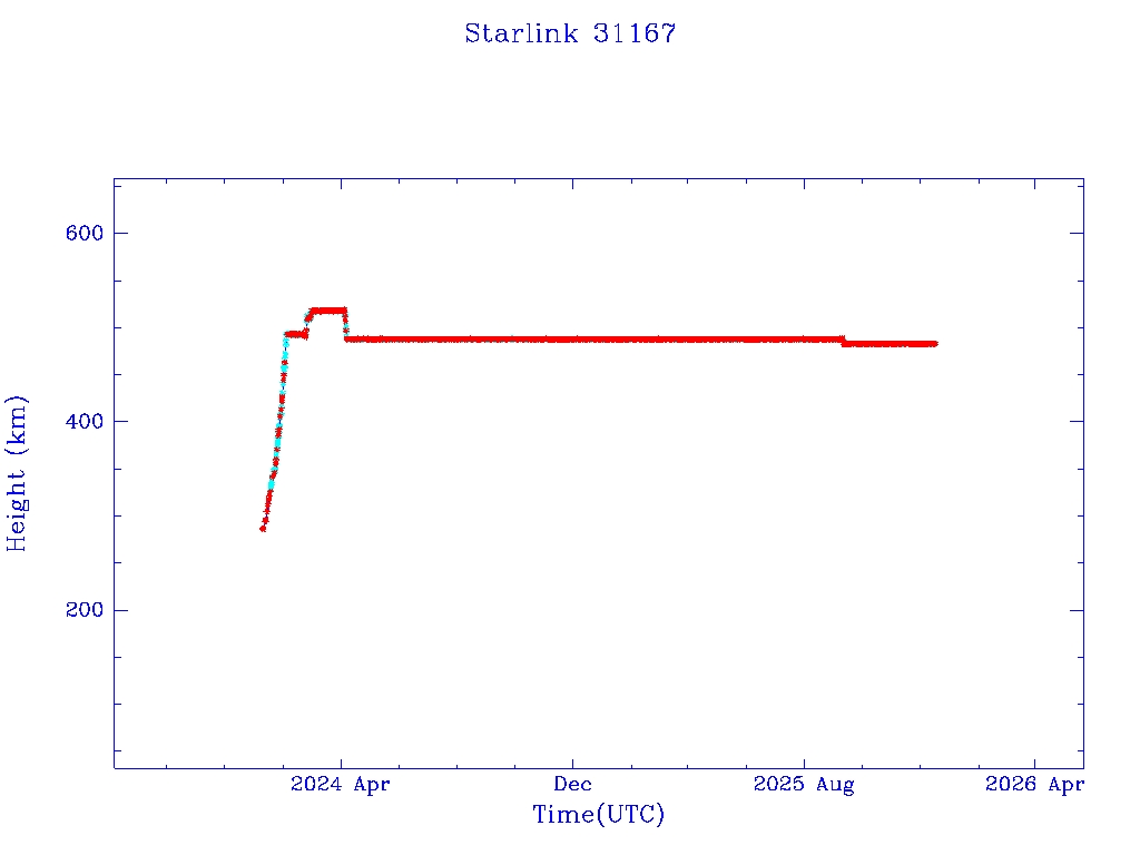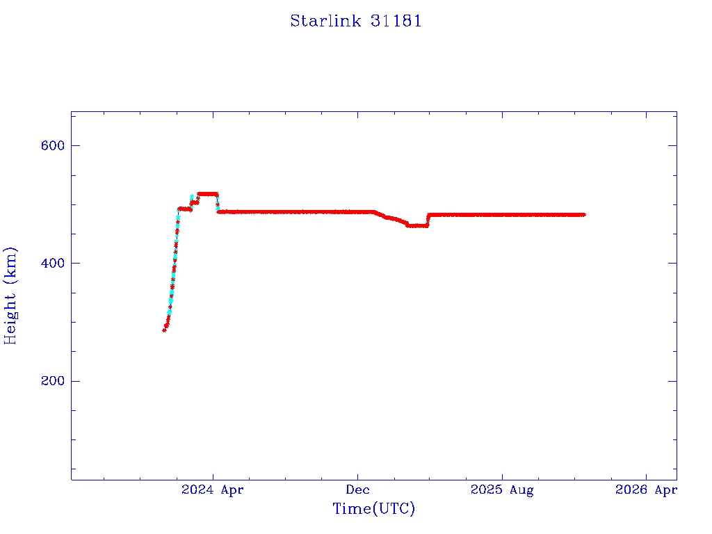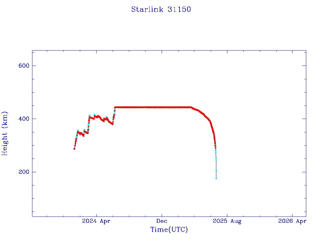 | Starlink 31150 | S58730 | R | 2024 Jan 7 | 2025 May 9? | 2025 Jun 21 |  |  |  |