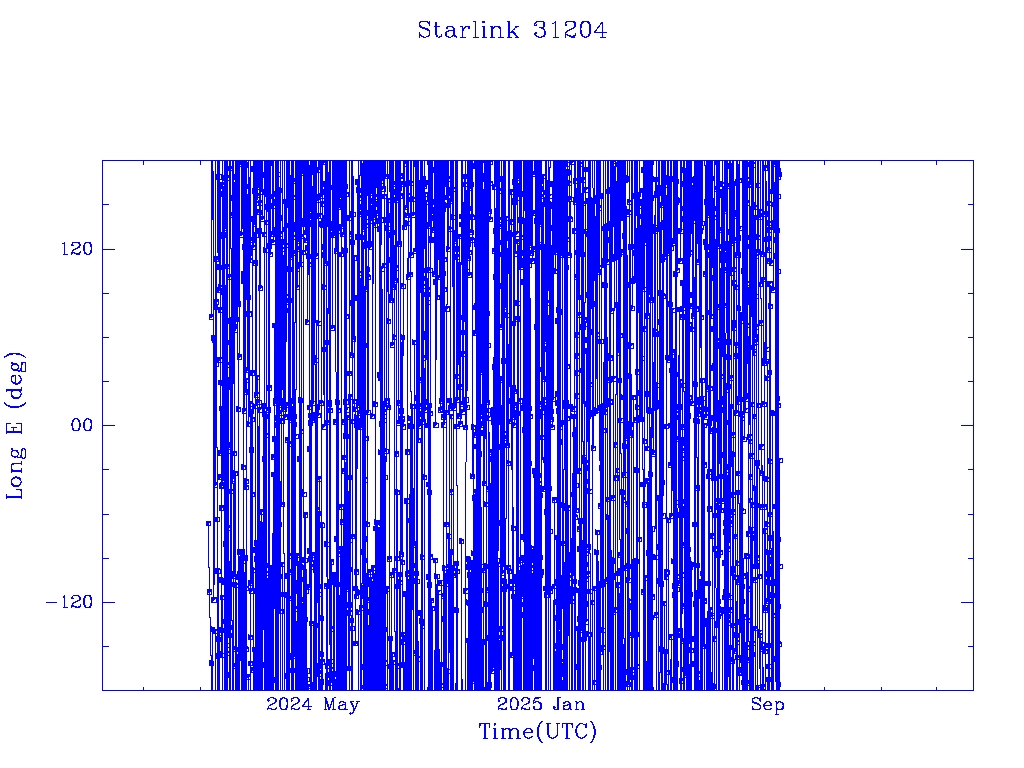 | Starlink 31204 | S58731 | R | 2024 Jan 7 | 2025 Sep 7? | 2025 Sep 13 |  |  |  |