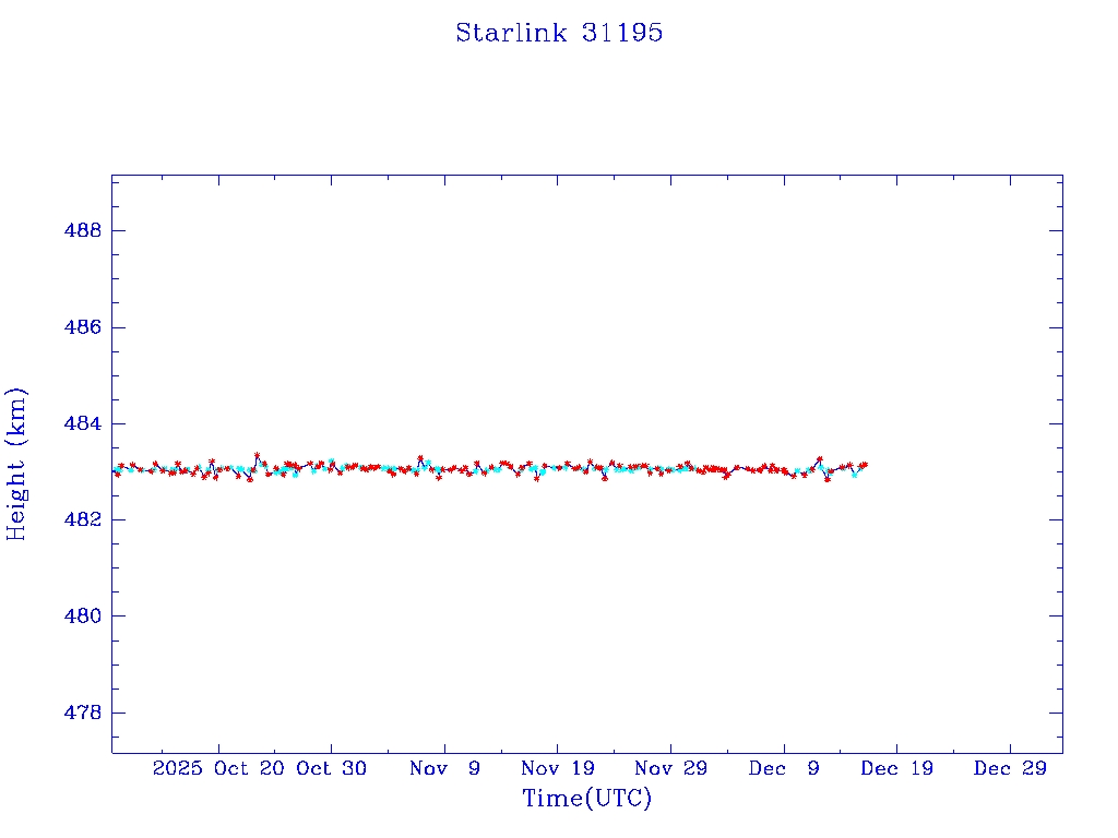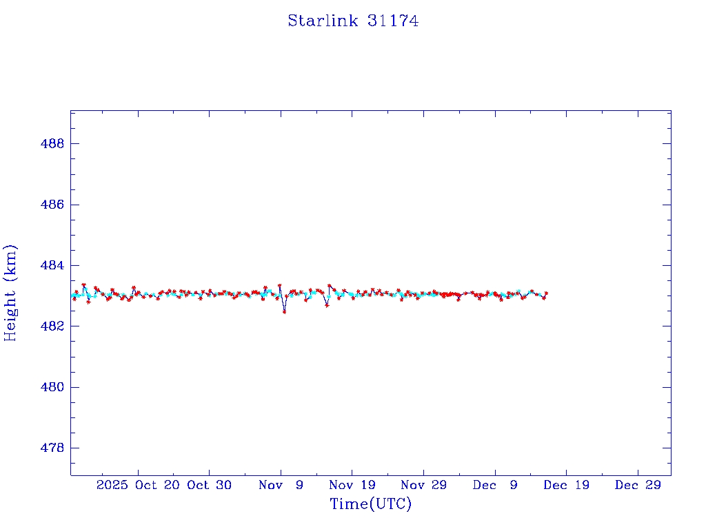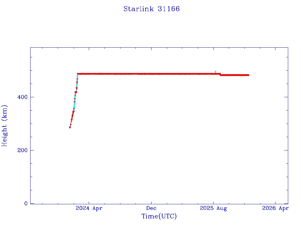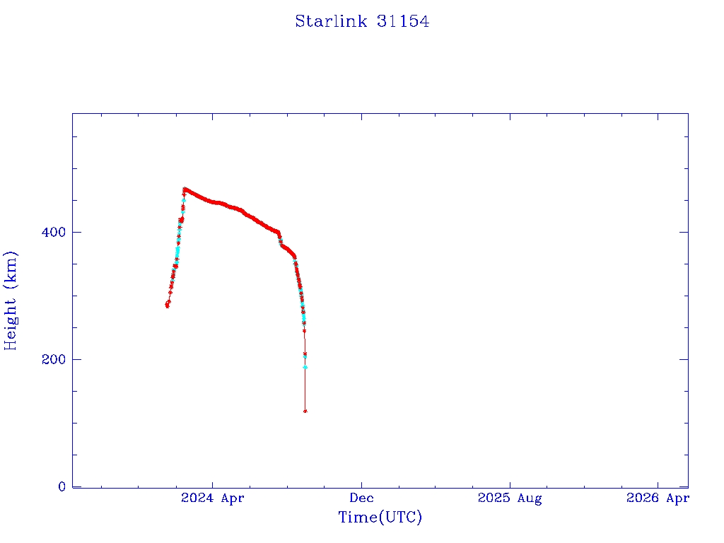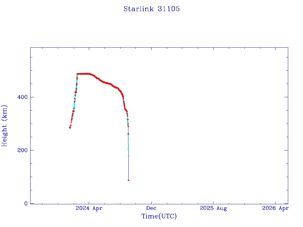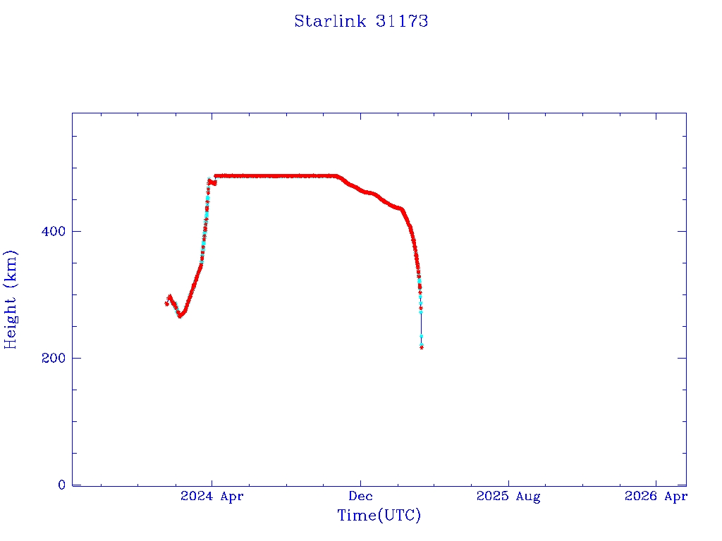 | Starlink 31173 | S58802 | R | 2024 Jan 15 | 2025 Feb 19? | 2025 Mar 10 |  |  |  |