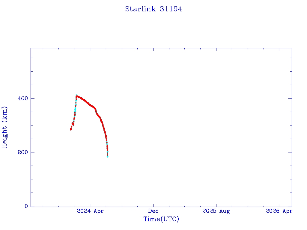 | Starlink 31194 | S58792 | F | 2024 Jan 15 | 2024 Apr 25 | 2024 Jun 6 |  |  |  |