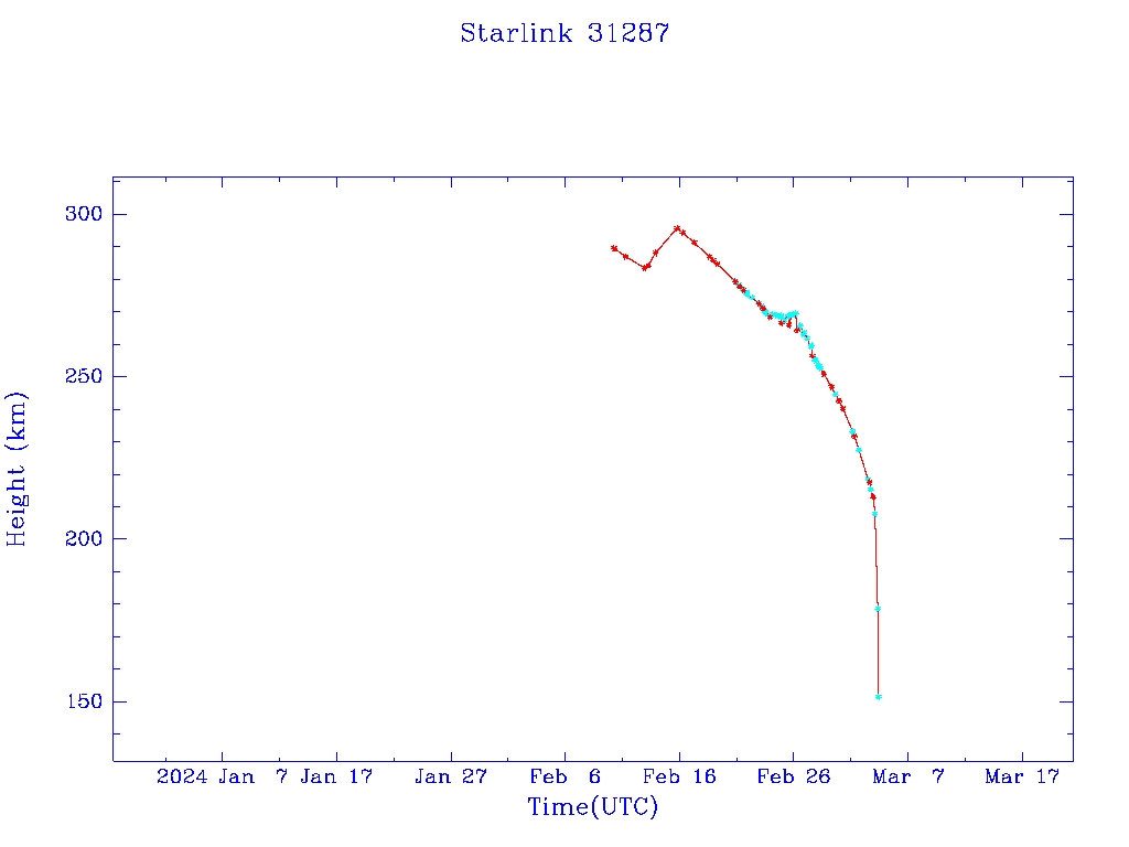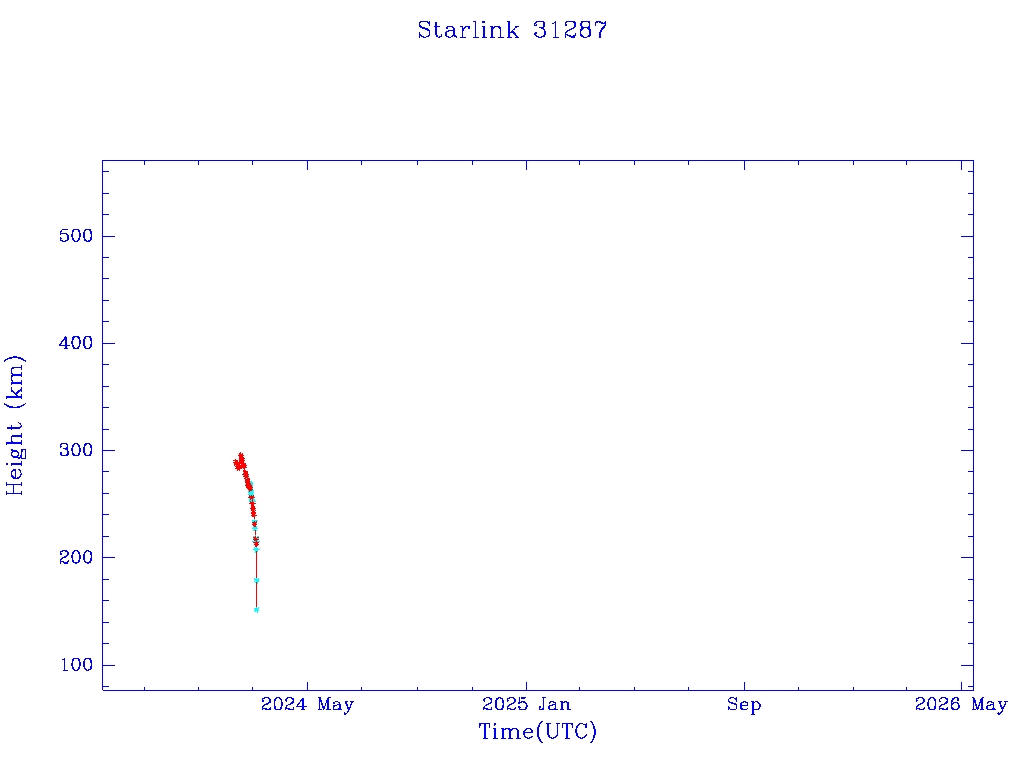 | Starlink 31287 | S58950 | F | 2024 Feb 10 | 2024 Feb 27 | 2024 Mar 4 |  |  |  |