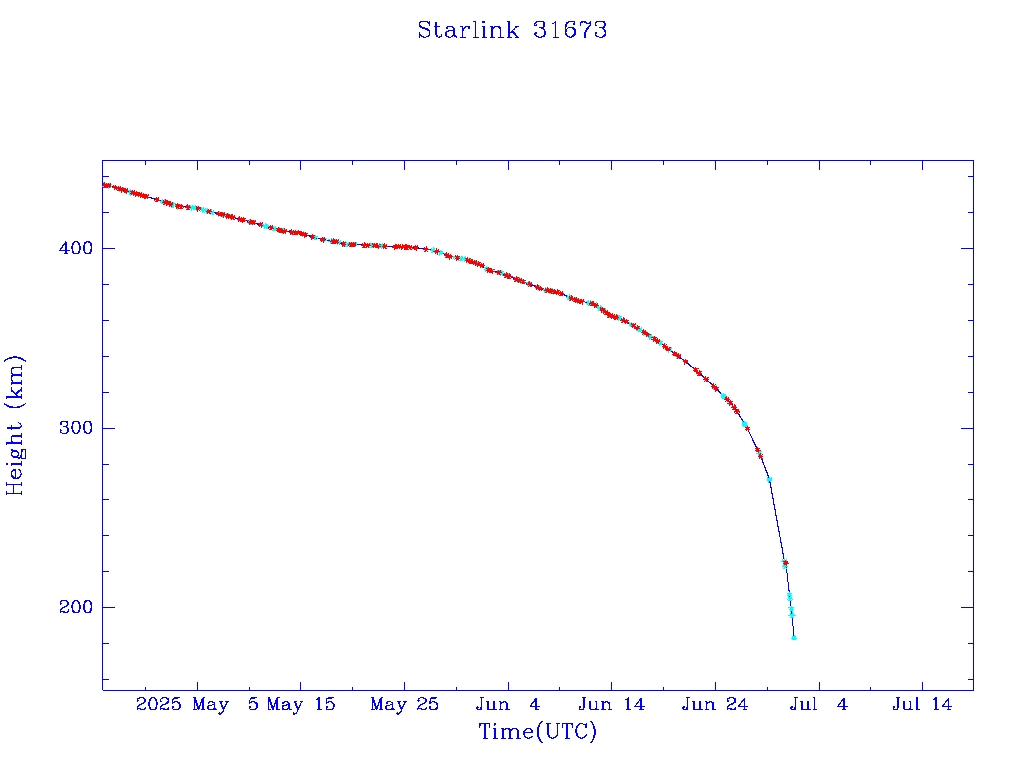 | Starlink 31673 | S59262 | R | 2024 Mar 19 | 2025 May 28? | 2025 Jul 1 |  |  |  |