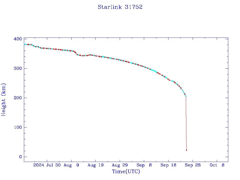 | Starlink 31752 | S59428 | F | 2024 Apr 7 | 2024 Aug 19? | 2024 Sep 25 |  |  |  |