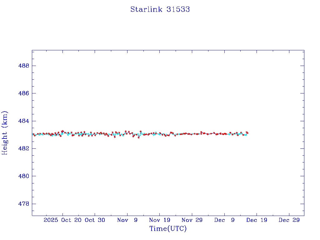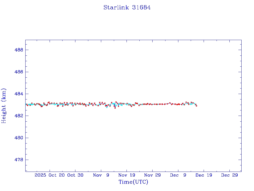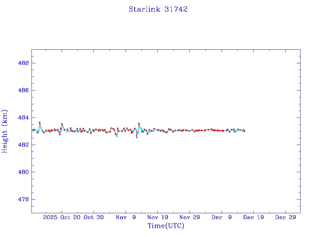 | Starlink 31653 | S59485 | R | 2024 Apr 13 | 2025 Feb 15? | 2025 Feb 25 |  |  |  |