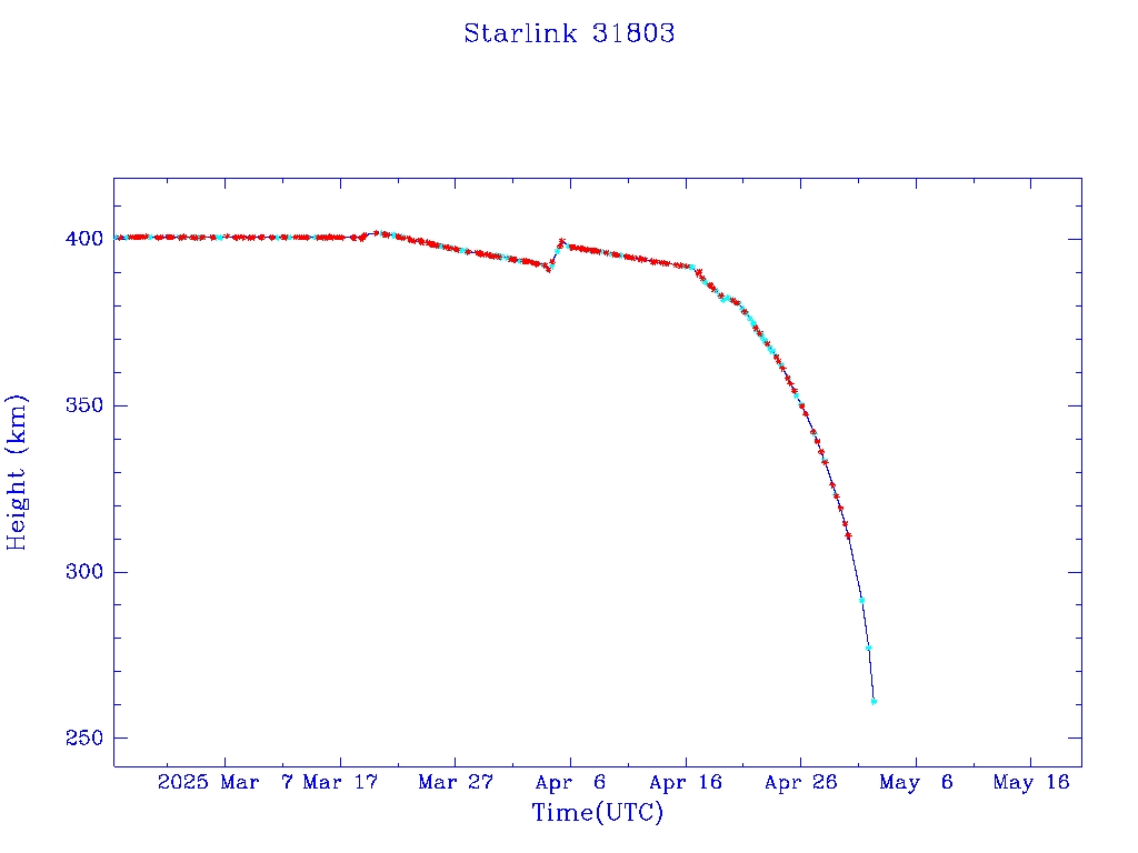 | Starlink 31803 | S59649 | R | 2024 May 3 | 2025 Apr 18? | 2025 May 3 |  |  |  |