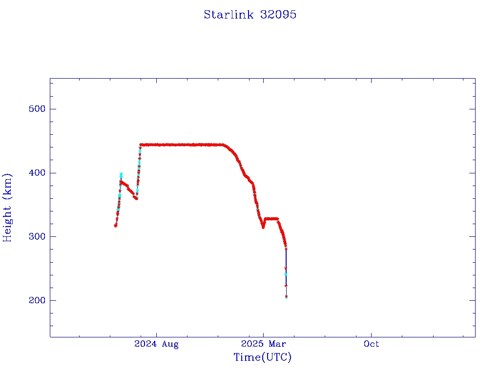 | Starlink 32095 | S59692 | R | 2024 May 8 | 2025 Apr 13? | 2025 Apr 24 |  |  |  |