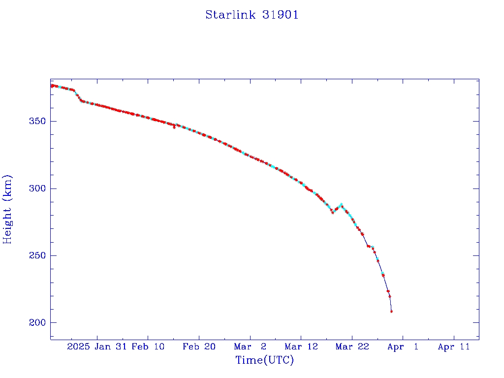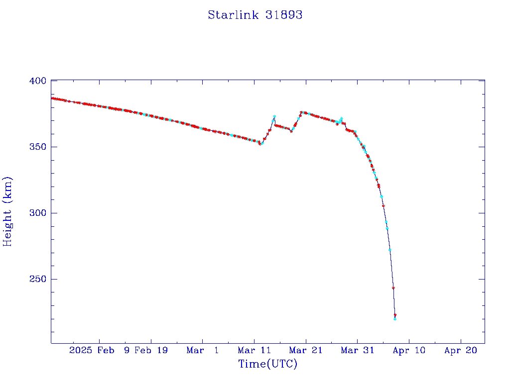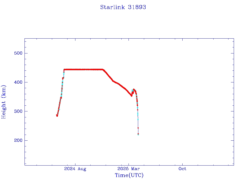 | Starlink 31893 | S59792 | R | 2024 May 18 | 2025 Mar 30? | 2025 Apr 7 |  |  |  |