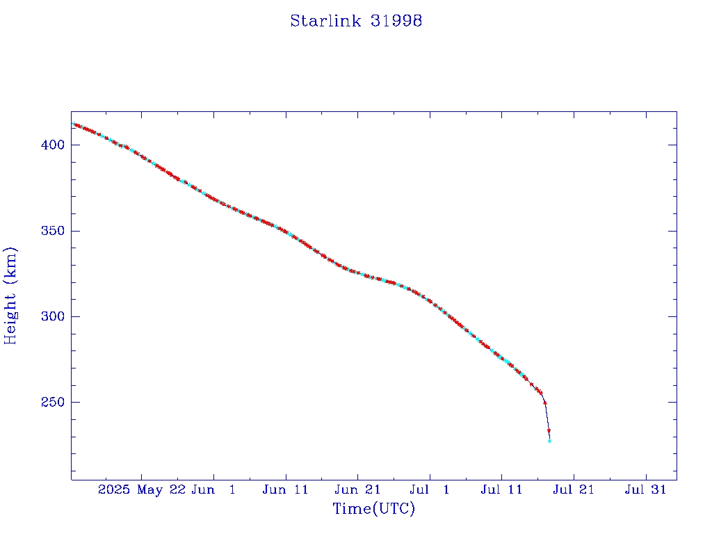 | Starlink 31998 | S60033 | R | 2024 Jun 8 | 2025 Jun 28? | 2025 Jul 18 |  |  |  |