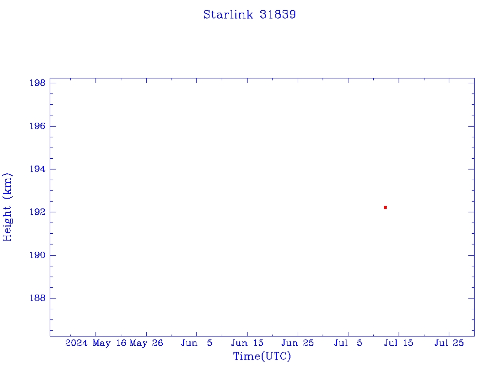 | Starlink 31839 | A11267 | F | 2024 Jul 12 | 2024 Jul 12 | 2024 Jul 12 |  |  |  |