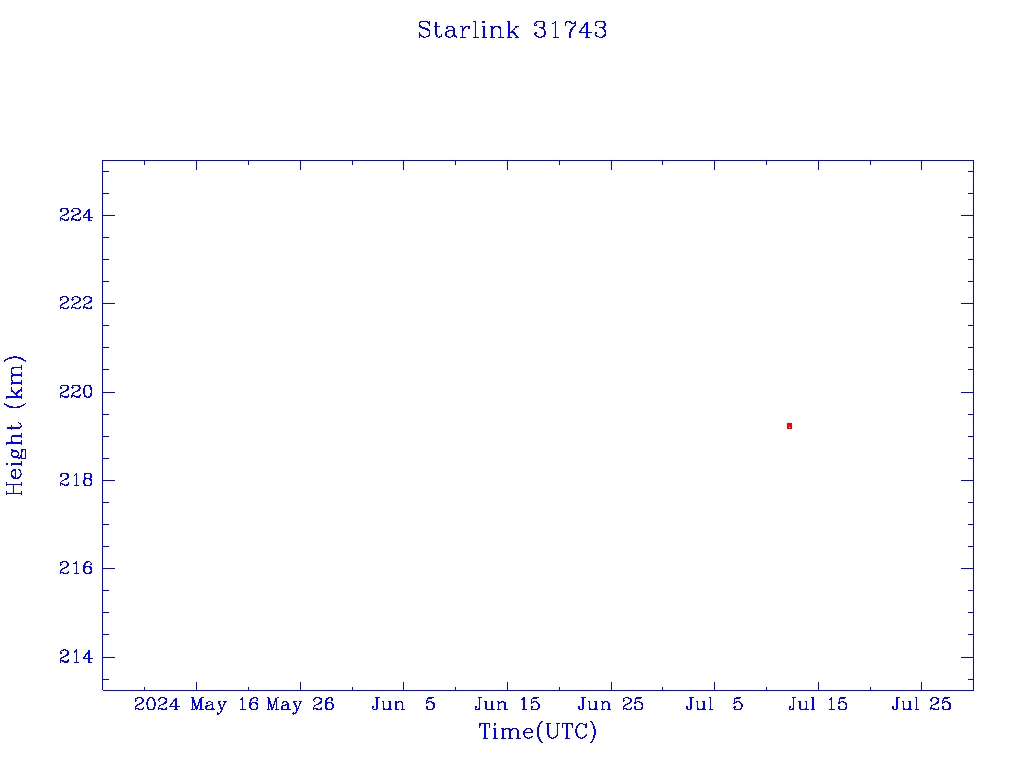 | Starlink 31743 | A11268 | F | 2024 Jul 12 | 2024 Jul 12 | 2024 Jul 12 |  |  |  |