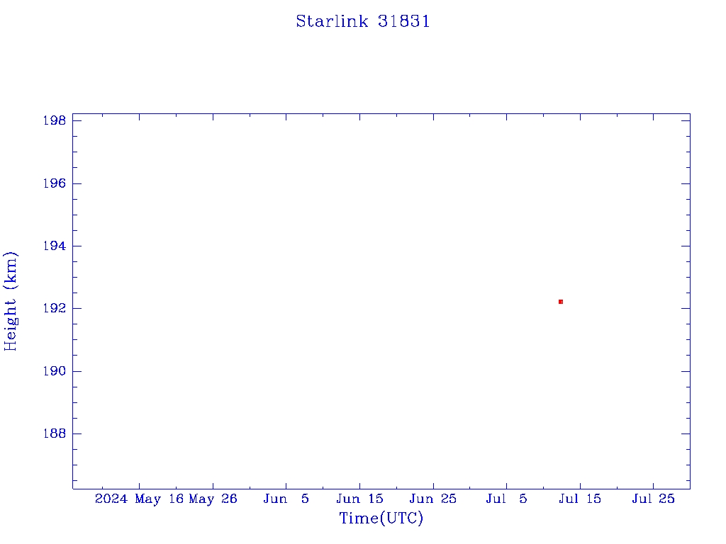 | Starlink 31831 | A11270 | F | 2024 Jul 12 | 2024 Jul 12 | 2024 Jul 12 |  |  |  |