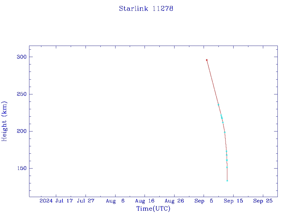| Starlink 11278 | S60990 | F | 2024 Sep 5 | 2024 Sep 5? | 2024 Sep 12 |  |  |  |