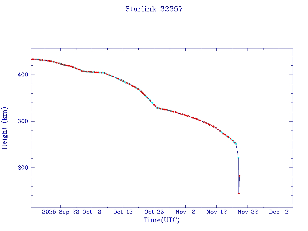 | Starlink 32357 | S61009 | R | 2024 Sep 5 | 2025 Nov 18? | 2025 Nov 19 |  |  |  |