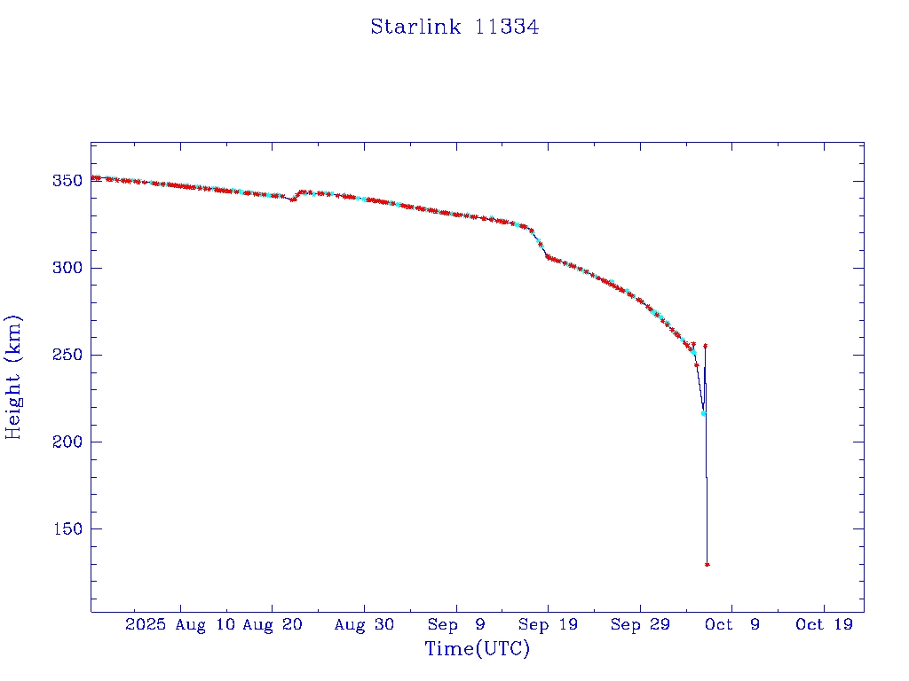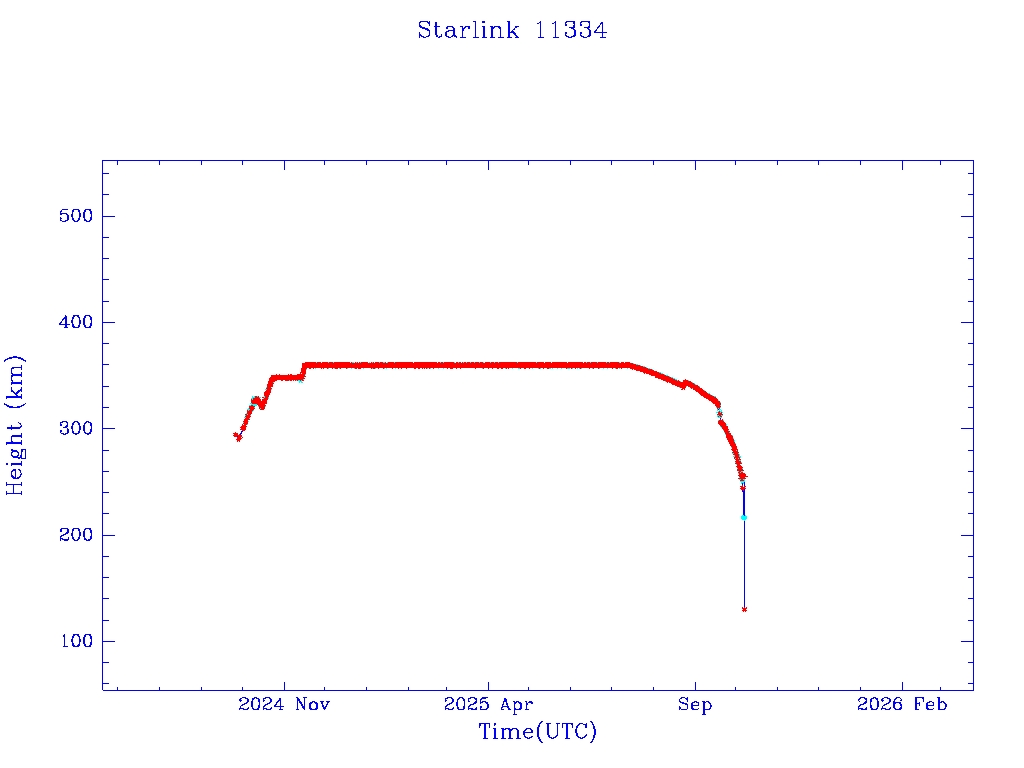 | Starlink 11334 | S61250 | R | 2024 Sep 25 | 2025 Sep 19? | 2025 Oct 6 |  |  |  |