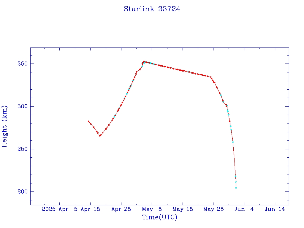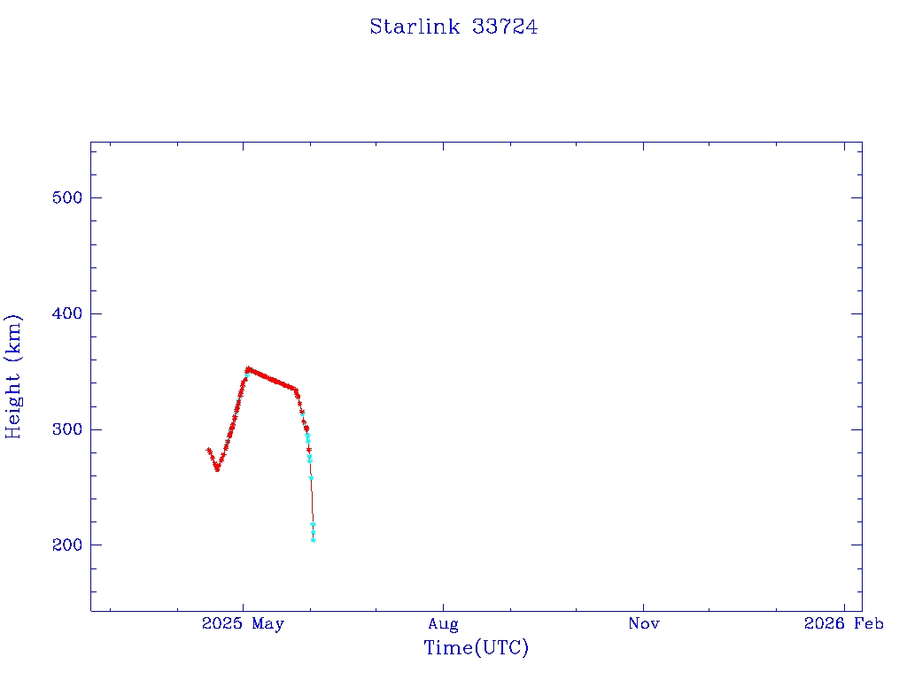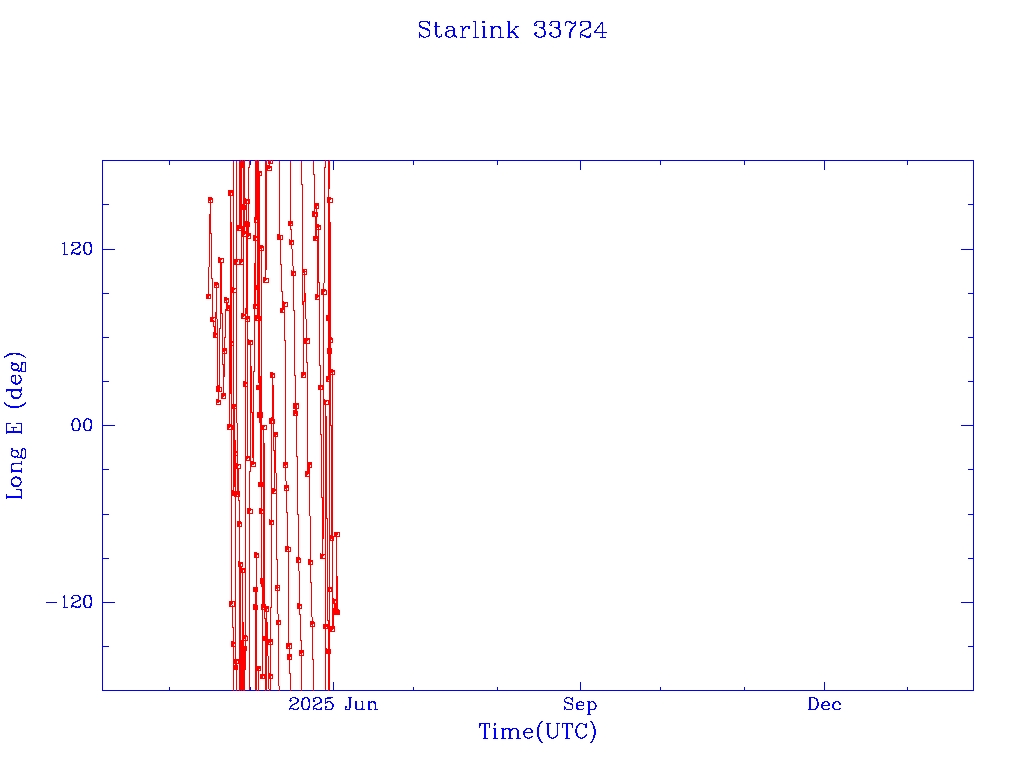 | Starlink 33724 | S63574 | F | 2025 Apr 14 | 2025 May 24? | 2025 Jun 1 |  |  |  |