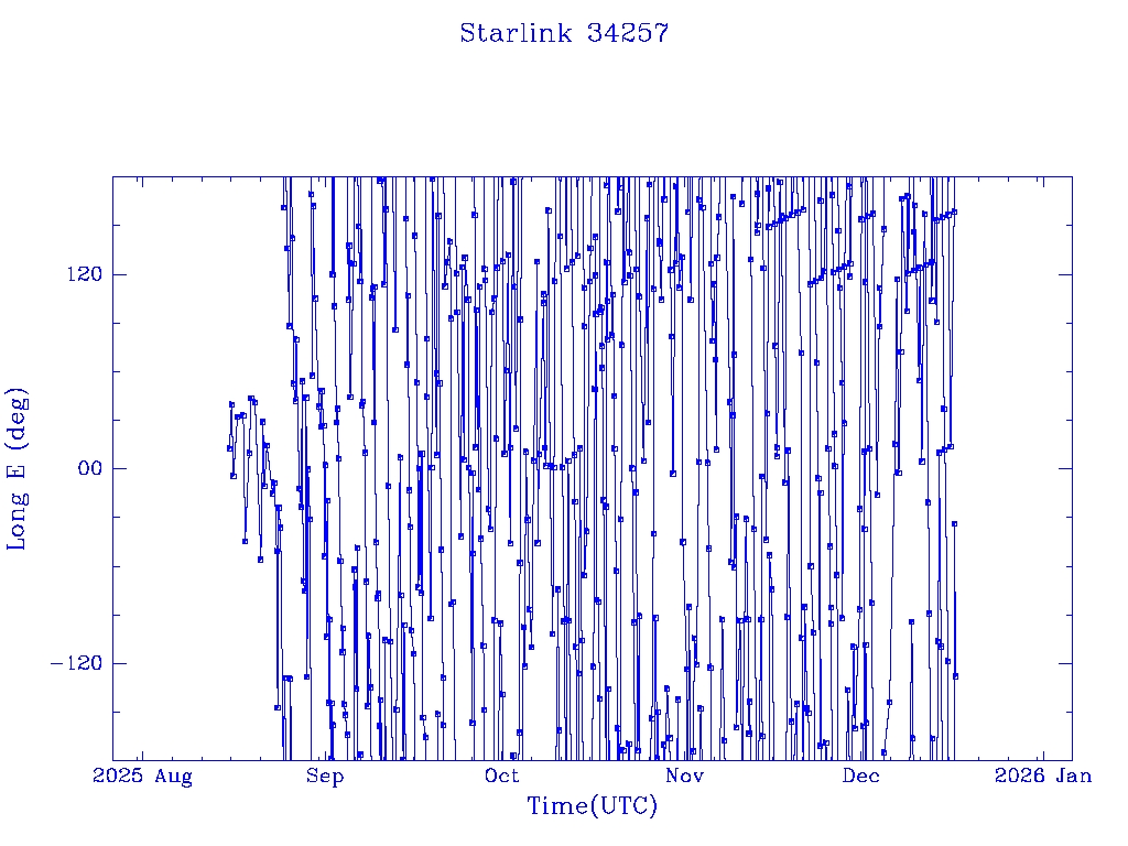 | Starlink 34257 | S65225 | O | 2025 Aug 14 | * | - |  |  |  |