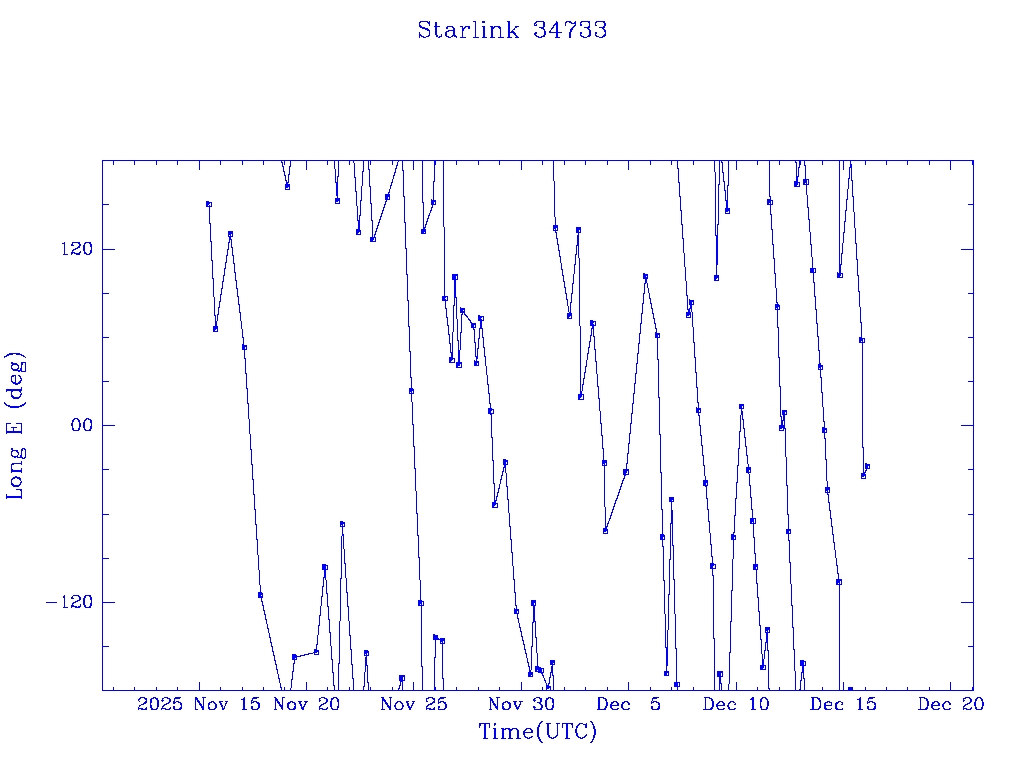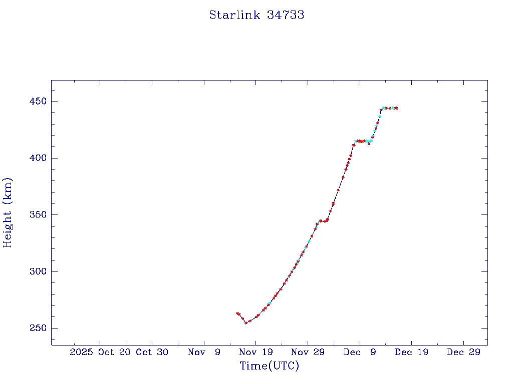 | Starlink 34733 | S66487 | A | 2025 Nov 15 | * | - |  |  |  |