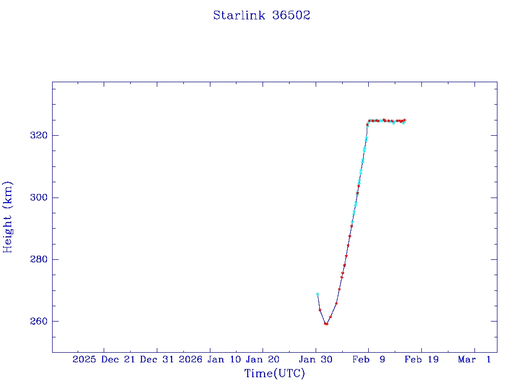 | Starlink 36502 | S67627 | A | 2026 Jan 30 | * | - |  |  |  |