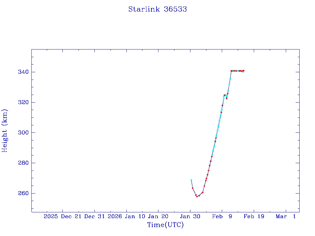 | Starlink 36533 | S67643 | A | 2026 Jan 30 | * | - |  |  |  |