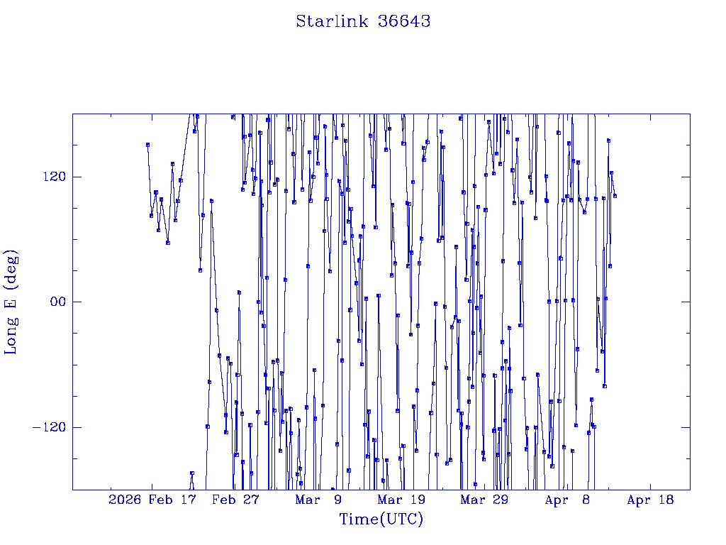 | Starlink 36643 | S67822 | O | 2026 Feb 16 | * | - |  |  |  |