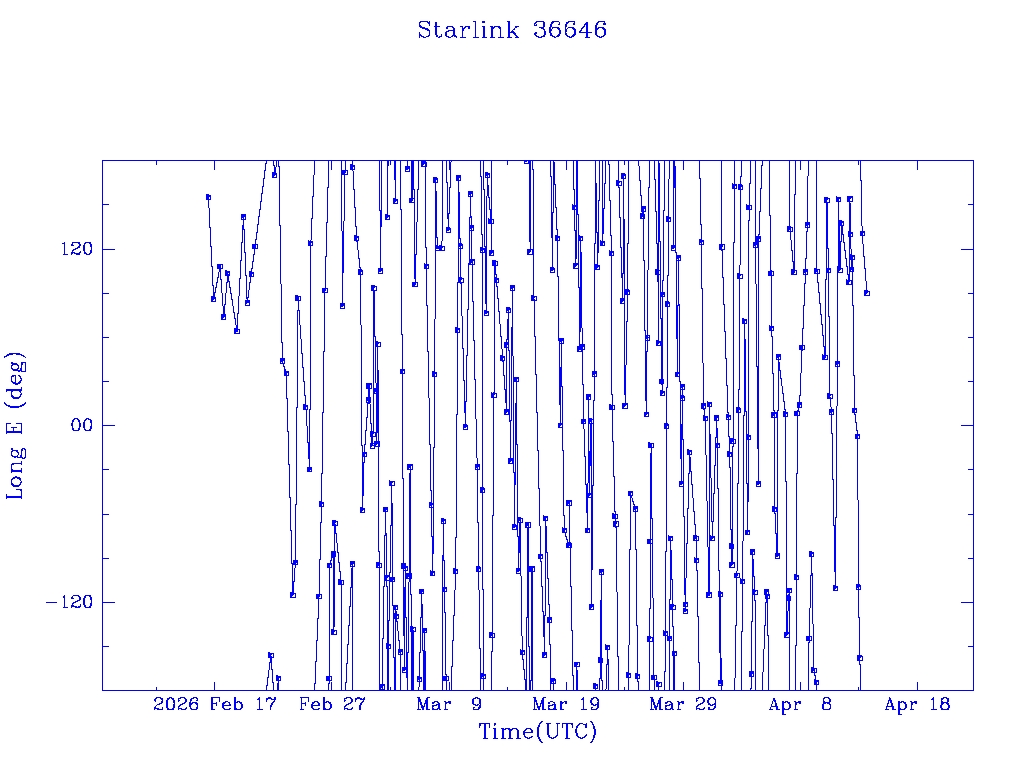 | Starlink 36646 | S67823 | O | 2026 Feb 16 | * | - |  |  |  |