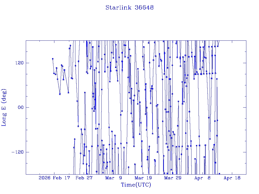 | Starlink 36648 | S67825 | O | 2026 Feb 16 | * | - |  |  |  |