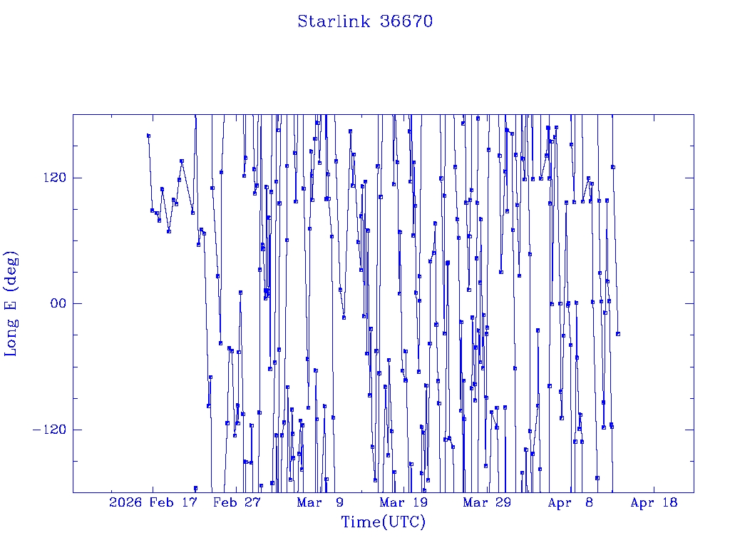 | Starlink 36670 | S67828 | O | 2026 Feb 16 | * | - |  |  |  |