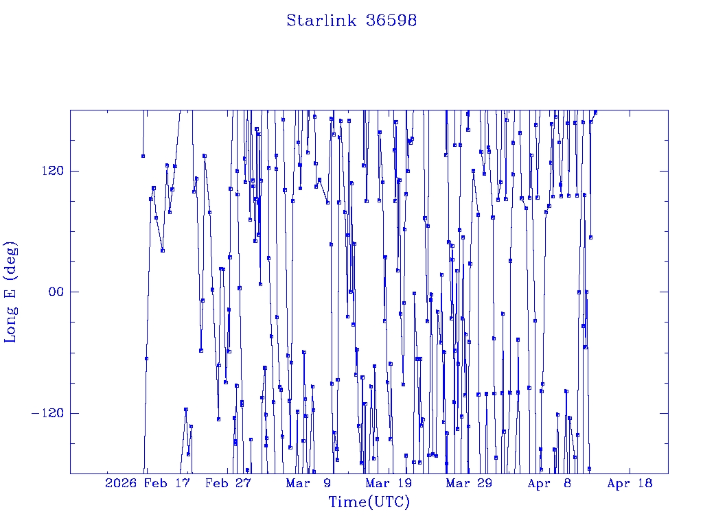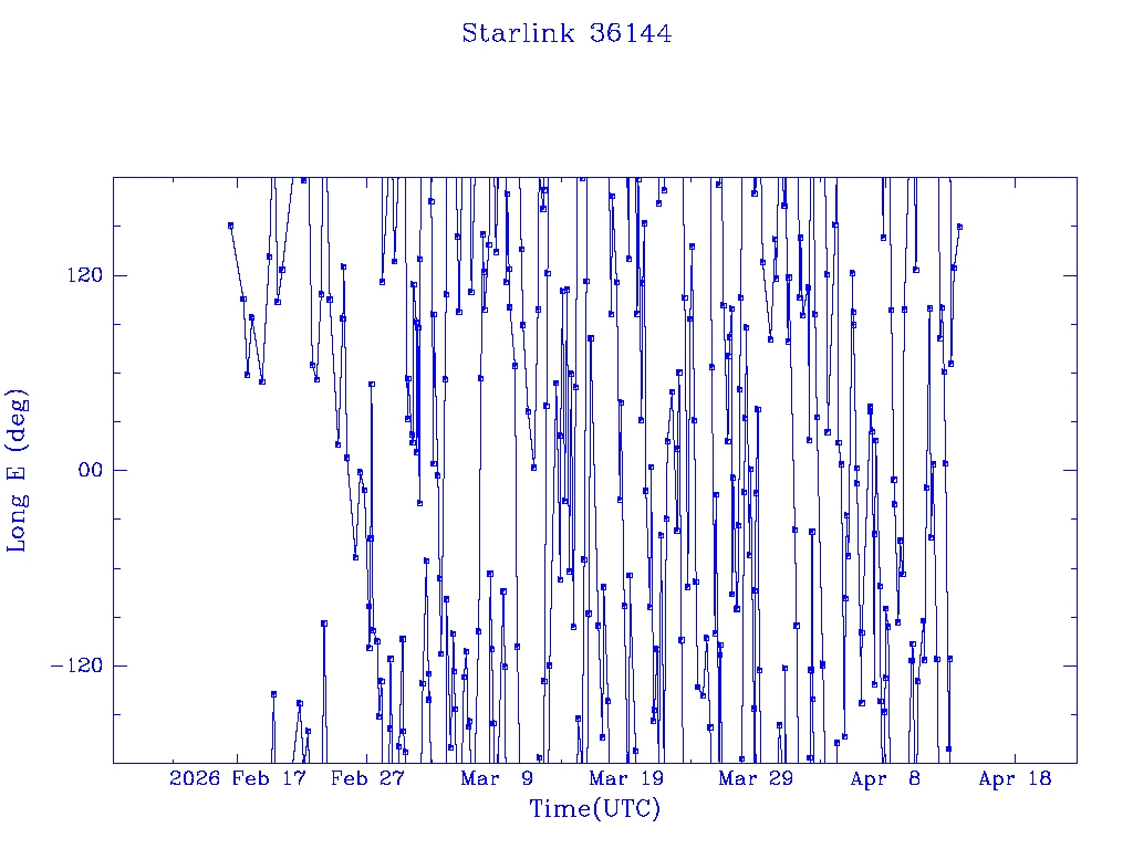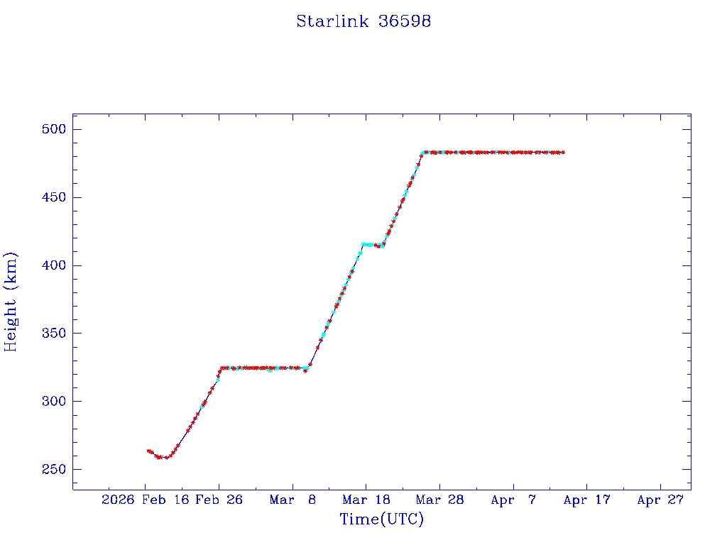 | Starlink 36598 | S67844 | O | 2026 Feb 16 | * | - |  |  |  |