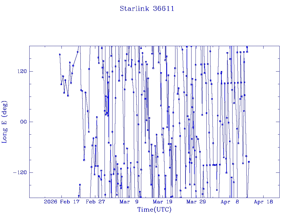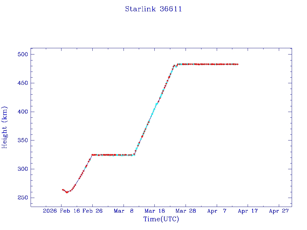 | Starlink 36611 | S67830 | O | 2026 Feb 16 | * | - |  |  |  |